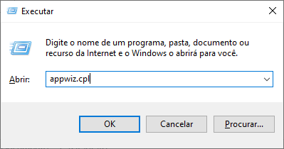 Alternativamente, você pode digitar appwiz.cpl na janela Executar e clicar em OK para ir direto para Programas e Recursos.