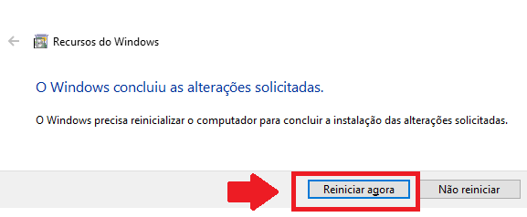 4. Após o processo anterior, clique em Reiniciar agora para dar continuidade à ativação do Hyper-V no Windows 10 Pro.