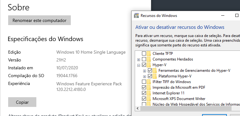 Script para instalação do Hyper-V no Windows 10 Single Language